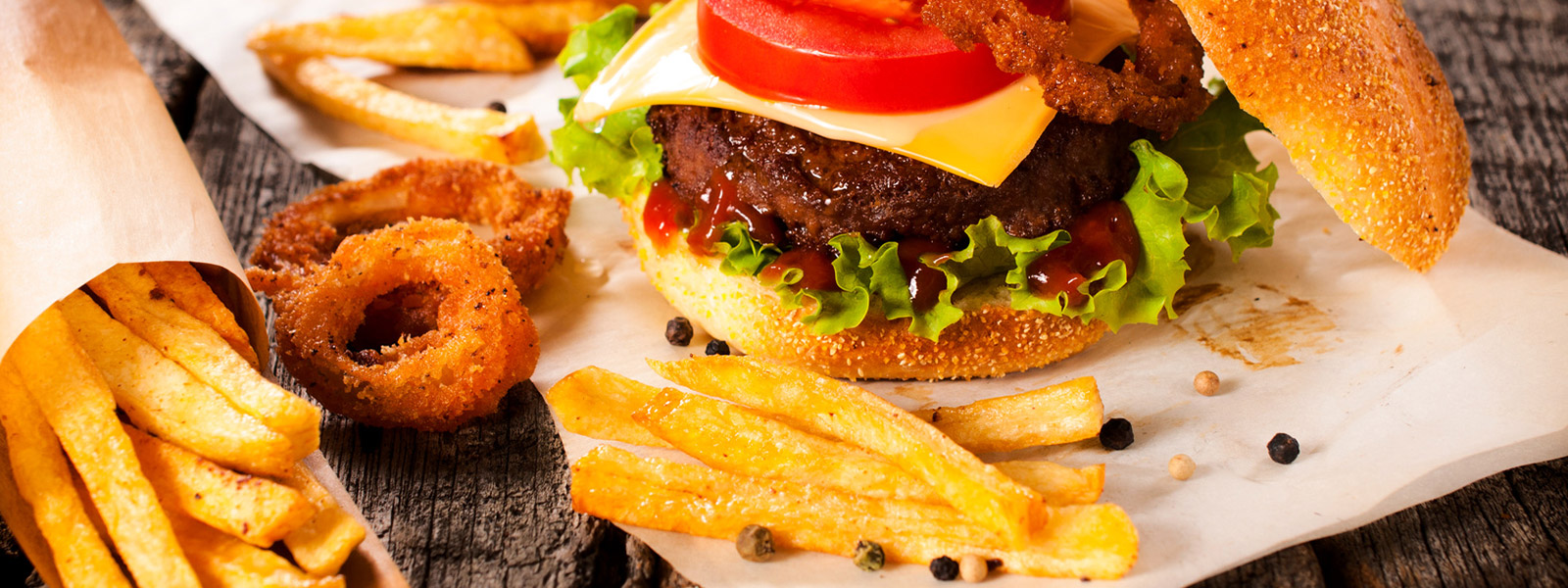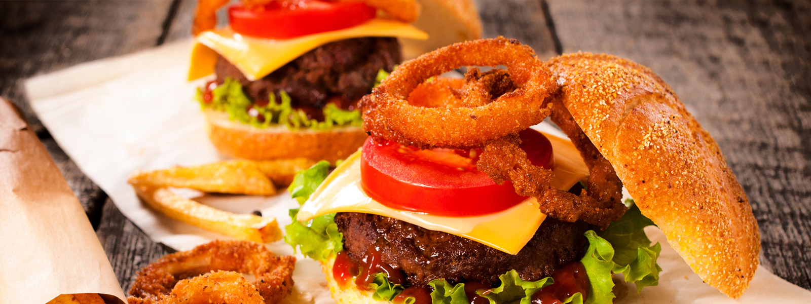 Bułka, podwójny kotlet 100% wołowiny, boczek, podwójny ser Cheddar, sałata lodowa, pomidory świeże, ogórki konserwowe, cebula czerwona, majonez, ketchup -